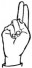 На ћирилици написано РАДНА МИСЛОПОЉАЦ састоји се из 15 слова [?]. Исписано ћириличном једноручном азбуком за глувонеме: